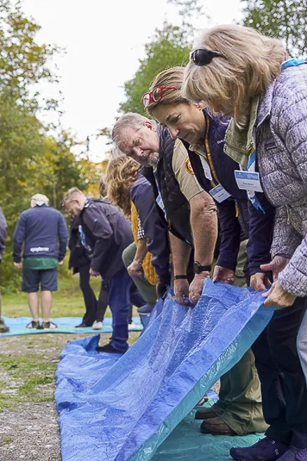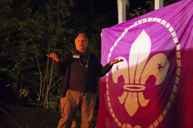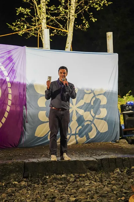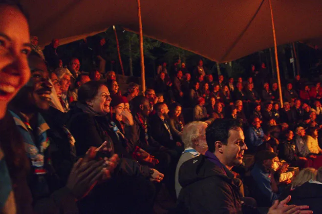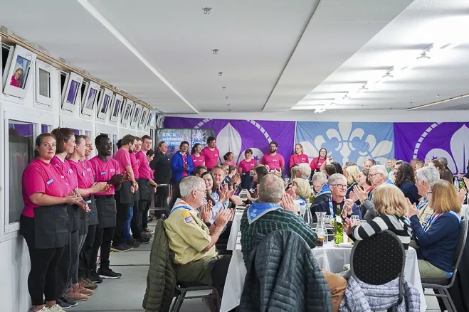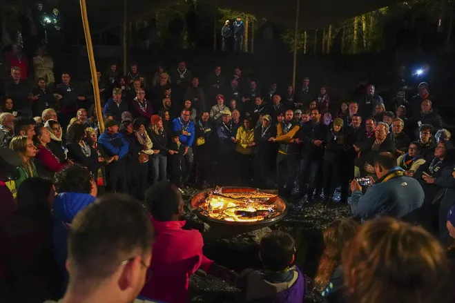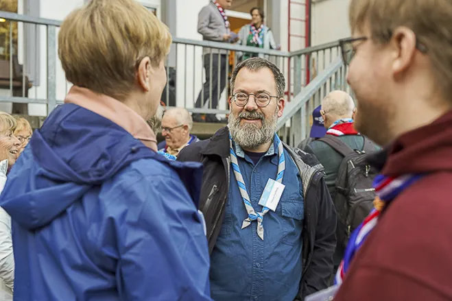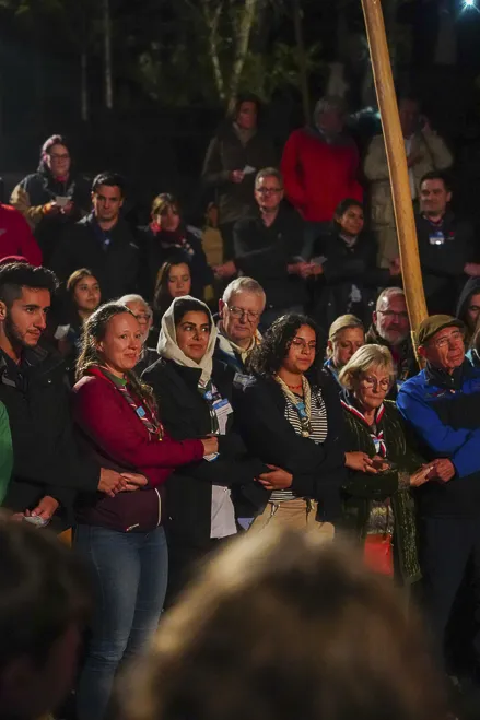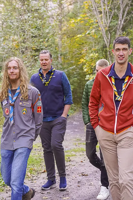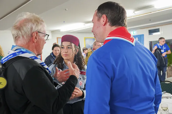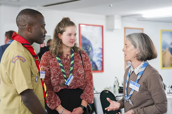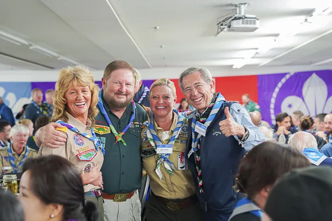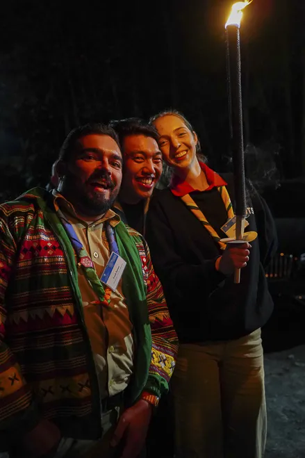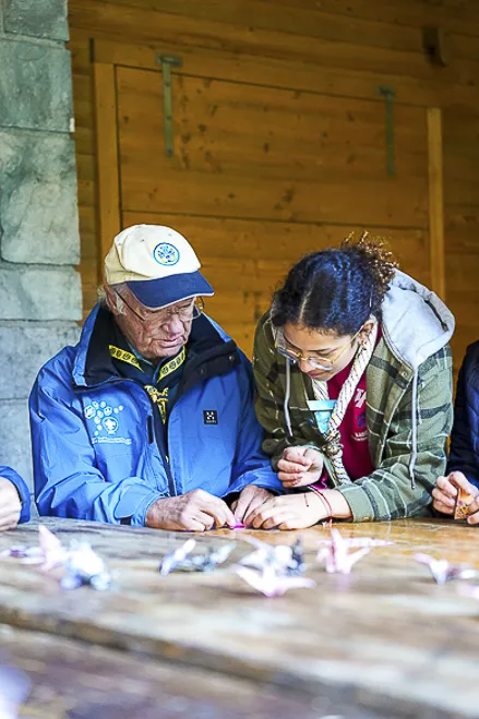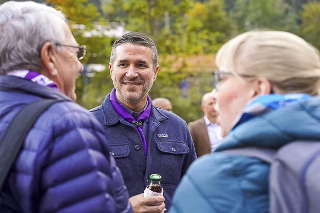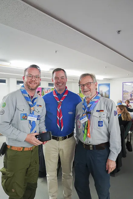 The 75th BP Fellowship Event was opened on Friday morning, 6 October, by HRH Prince Guillaume of Luxembourg, Chair* of the World Scout Foundation, Mark Knippenberg, Chief Executive Officer (CEO); Philippe Moser and Cristina Egli, Co-Presidents of the Swiss Guide and Scout Movement; Barbara Jost, Mayor of Kandersteg; Aidan Jones, Chair of the KISC Committee, and Jack Higgins, KISC Director; introduced by Nicole Gooderson, Deputy CEO of the World Scout Foundation. The Opening session ended with a flag break and group photo, then guests joined KISC-led Scout activities around the grounds and campsite