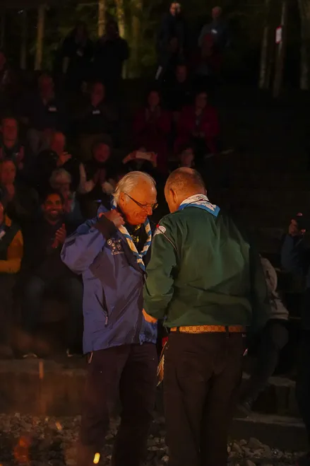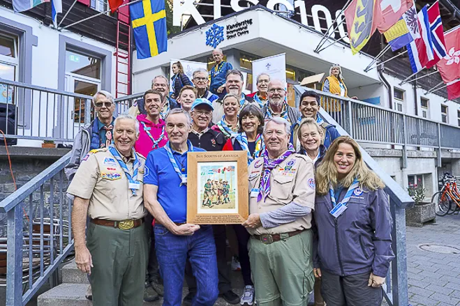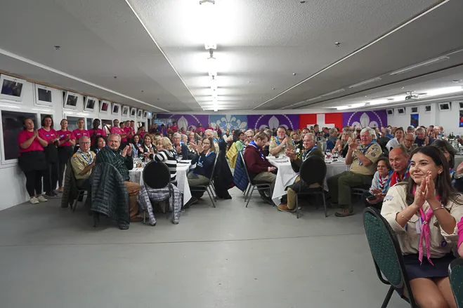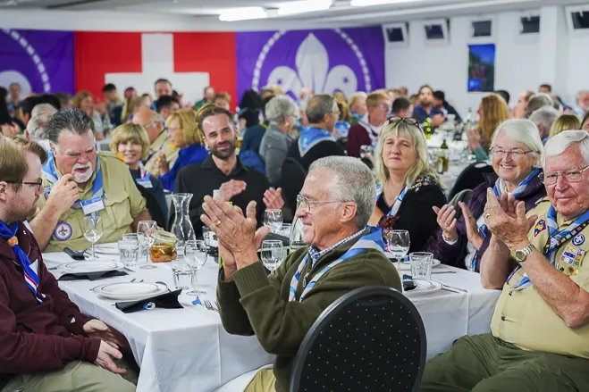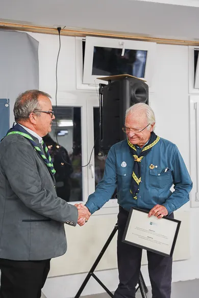 In the evening, participants enjoyed a Swiss-themed KISC Centenary Dinner held in the Kanderlodge. The President of the Municipal Council, René Maeder, presented WSF Honorary Chairman, HM King Carl XVI Gustaf of Sweden with a special gift to sponsor two Scouts from Sweden to visit KISC, HRH Prince Guillaume delivered a stirring address on what KISC imparts on all who visit it, and Aidan Jones and Jack Higgins then spoke to the KISC goals set for the Centenary and successfully met throughout 2023.