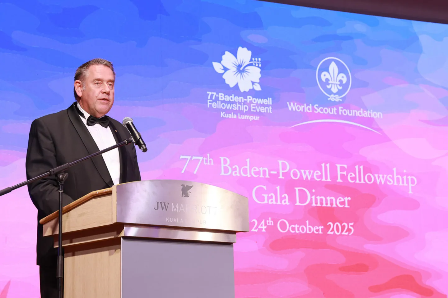 The 77th Baden-Powell Fellowship Event, Gala dinner was held in Kuala Lumpur, Malaysia, 25 October 2025, 500 guests — BP Fellows, Scouts and distinguished guests gathered at the Mayang Sari Ballroom of the JW Marriott for a night of celebration and purpose. 72 BP Fellows including 11 Honours Programme Members (including couples — a total of 17 individuals), were welcomed into the BP Fellowship by our Honorary Chairman, HM The King of Sweden and our new Chair, Beat Wenger, with 43 coming from Malaysia!