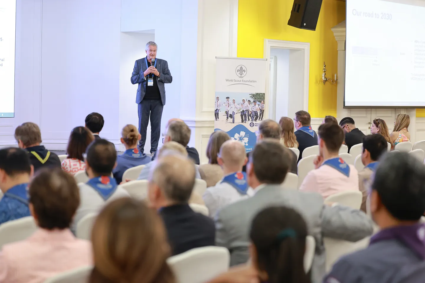 The evening continued with the WSF Update Session, covering progress on strategic KPIs, growth in individual giving, and a diversified institutional funding portfolio. BP Fellows also connected in a vibrant marketplace showcasing World Scouting’s educational pillars and how your support strengthens Scouting worldwide.