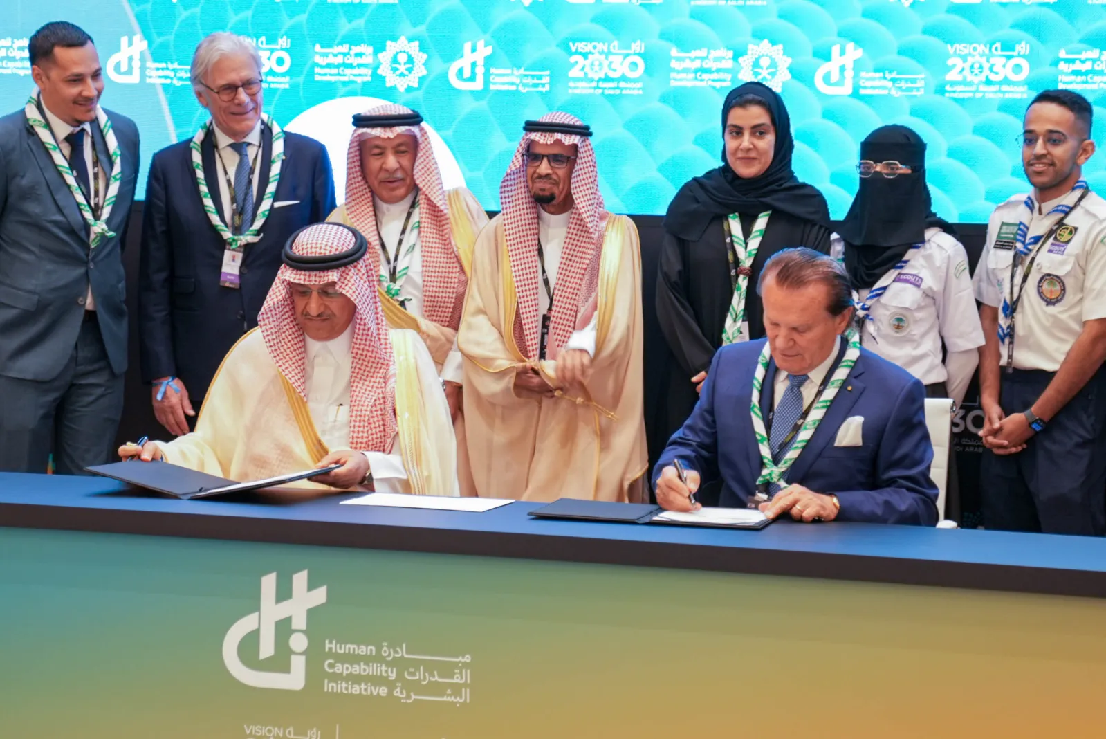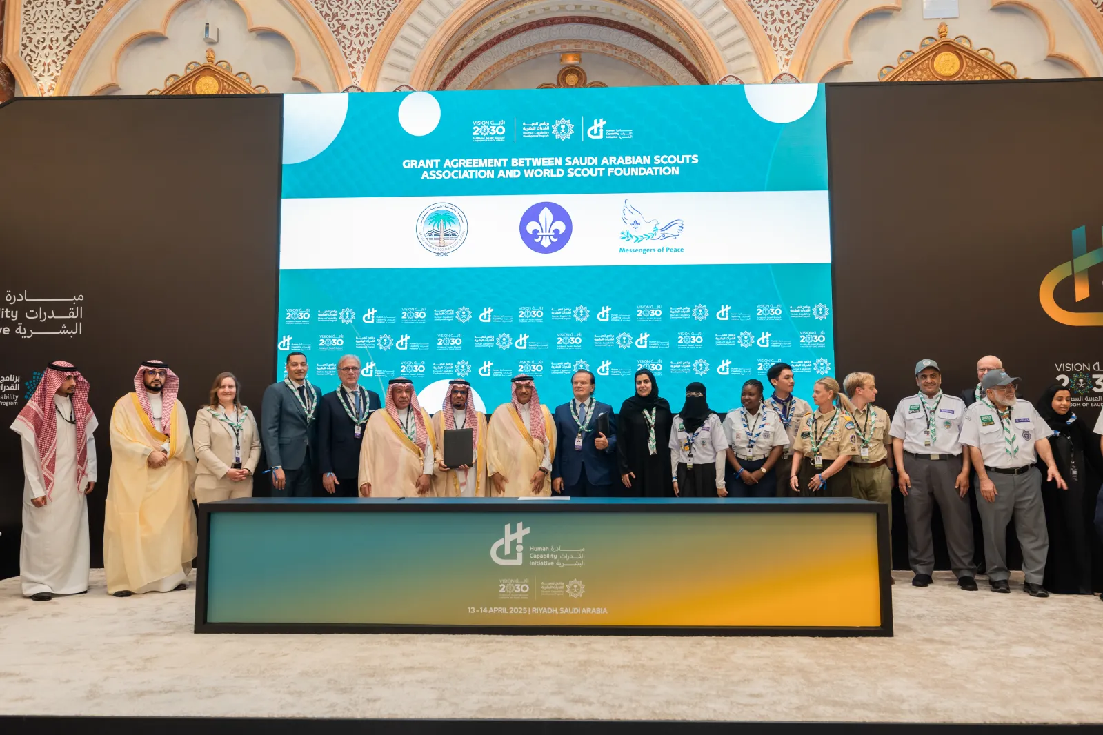 We’re excited to announce renewed Messengers of Peace Funding for World Scouting: The transformative Messengers of Peace agreement was signed 13 April 2025, at the Human Capability Initiative event in Riyadh between HE Yousef bin Abdullah al-Benyan, Minister of Education of the Kingdom of Saudi Arabia and President of the Saudi Arabian Scout Association, and Siegfried Weiser, Board Member and Chair of the Messengers of Peace Oversight Committee of the World Scout Foundation.