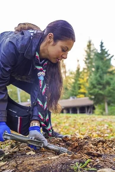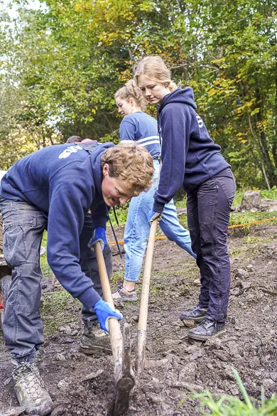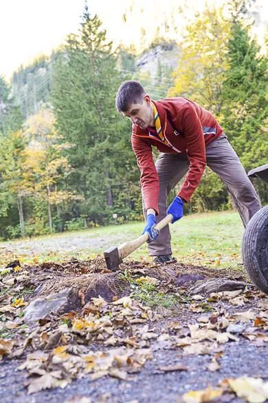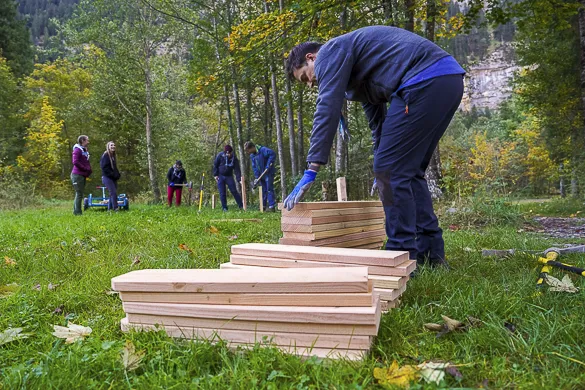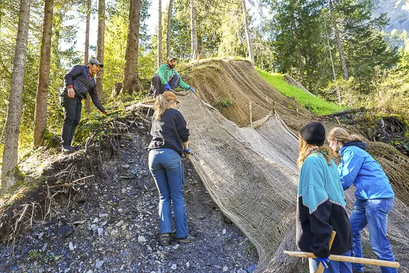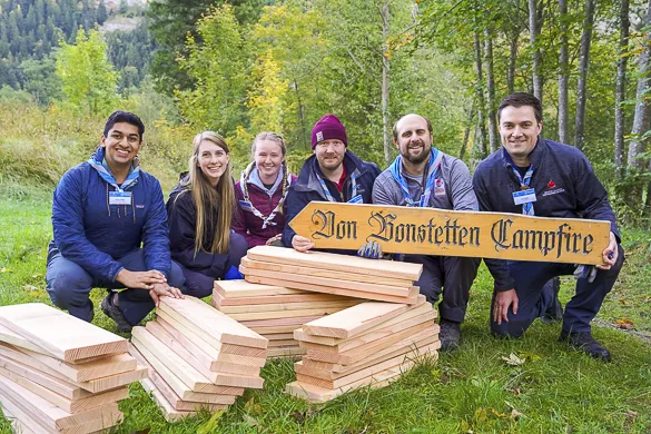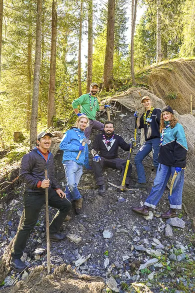 Thirty-one Young BP Fellows, BP Fellows and three accompanying Swiss Rover Scouts, worked on a landslide project, the restoration of pathways, the Africa region campfire, tree planting, reseeding and vegetation maintenance.