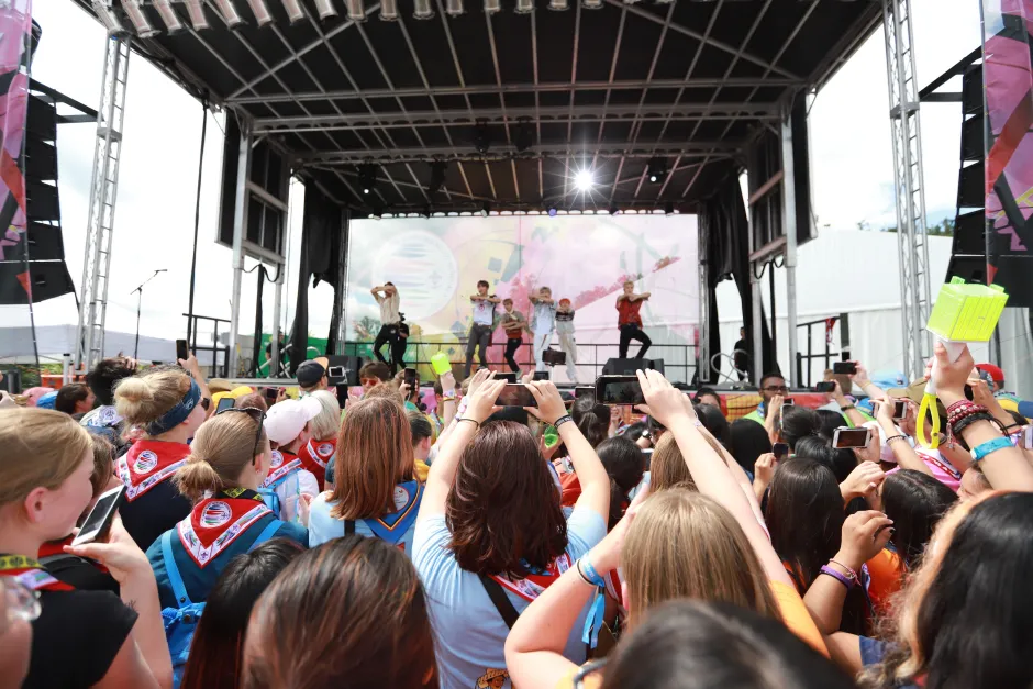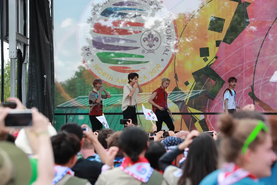 NCT DREAM, our global ambassador, performed hit songs on the opening day of the 24th World Scout Jamboree including “Fireflies”, the song released in collaboration with WSF. The crowds joined in and had a blast!