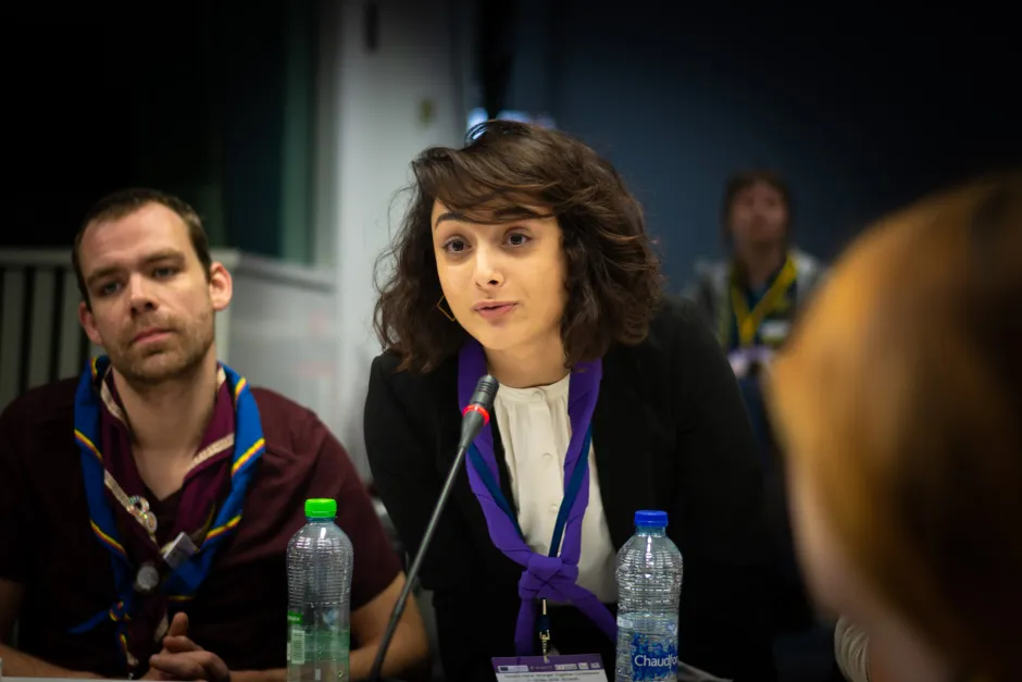 The closing speech of “Chip” Veerle Haverhals, a member of the European Scout Committee, reiterated the Scout commitment to the cause of refugees and migrants: