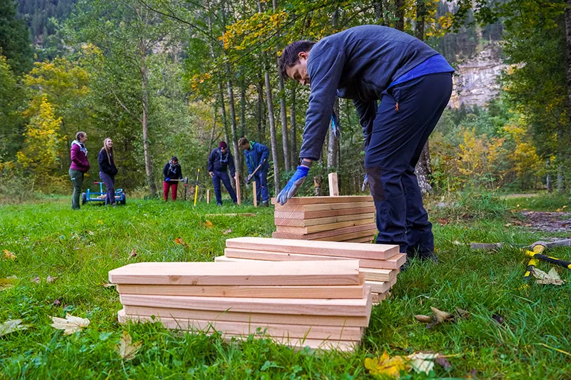 The programme during the day on 7 October featured Kandersteg tours for BP Fellows, a series of community service projects on the KISC campsite for 31 Young BP Fellows, BP Fellows and three accompanying Swiss Rover Scouts, who worked on a landslide project, the restoration of pathways, the Africa region campfire, tree planting, reseeding and vegetation maintenance. The 76th Foundation Board Meeting took place concurrently at the Waldhotel Doldenhorn and among many decisions, approved the new Chair, Rob Woolford and the new Chair Elect, Beat Wenger