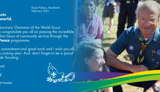 His Majesty King Carl XVI Gustaf of Sweden, Honorary Chairman of the World Scout Foundation, has congratulated Scouts worldwide on completing over 2 BILLION community service hours for the Sustainable...
