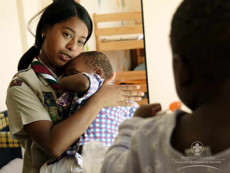 A Scout sings and dances at a campfire … this image is timeless … he is in a special world away from his regular surroundings … behind him is darkness and the unknown. Around him are his Scout friends, and in front is a warm and welcoming fire … he sings, he jokes, he dances … he builds his confidence, he is among friends who join him … he can be anything he wants here, he is anything he wants to be! This could be any year since the founding of Scouting in 1907. It could be any place in the 155 countries where Scouting has taken root, and this young man could be any one of the 28 million young men or women in Scouting today, or any of the 500 million who have worn a Scout uniform in the last 100 years. This particular young man is Jacob, a 16-year-old Scout, running a course on HIV/AIDS for children from a deprived community near Mafikeng, in South Africa, one hundred years after Scouting started. Jacob and his fellow Scouts lead a class of 30 children, aged between 9 and 12 years, most of their students are AIDS orphans, and Jacob uses the campfire to build a sense of trust among his students and to help these children believe that change is possible … the children sing, dance, grow … and believe! Jacob and the other Scouts (aged 14 to 17 years) are now the “older generation” in the fight against HIV infection in South Africa … their job is to instil in the “younger generation” a sense of hope for the future, a confidence that responsible behaviour is OK, and a belief that their own actions can help them grow up safely. As Jacob says, “We are making a gift to future generations in Africa – so that they will live without AIDS.” The campfire scene is timeless, and the work that Jacob and other Scouts are doing is timeless too. Like generations of Scouts before them, they have developed leadership skills, and like the Scouts before them, they want to use these skills to change their world! And guess what? They will succeed!